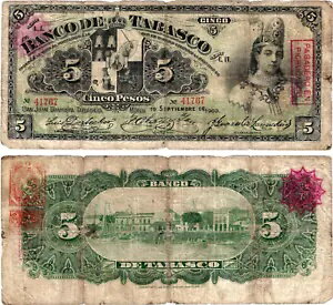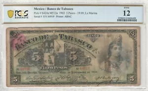 メキシコ、5 ペソ、タバスコ銀行、1903 年紙幣 ABNC F12