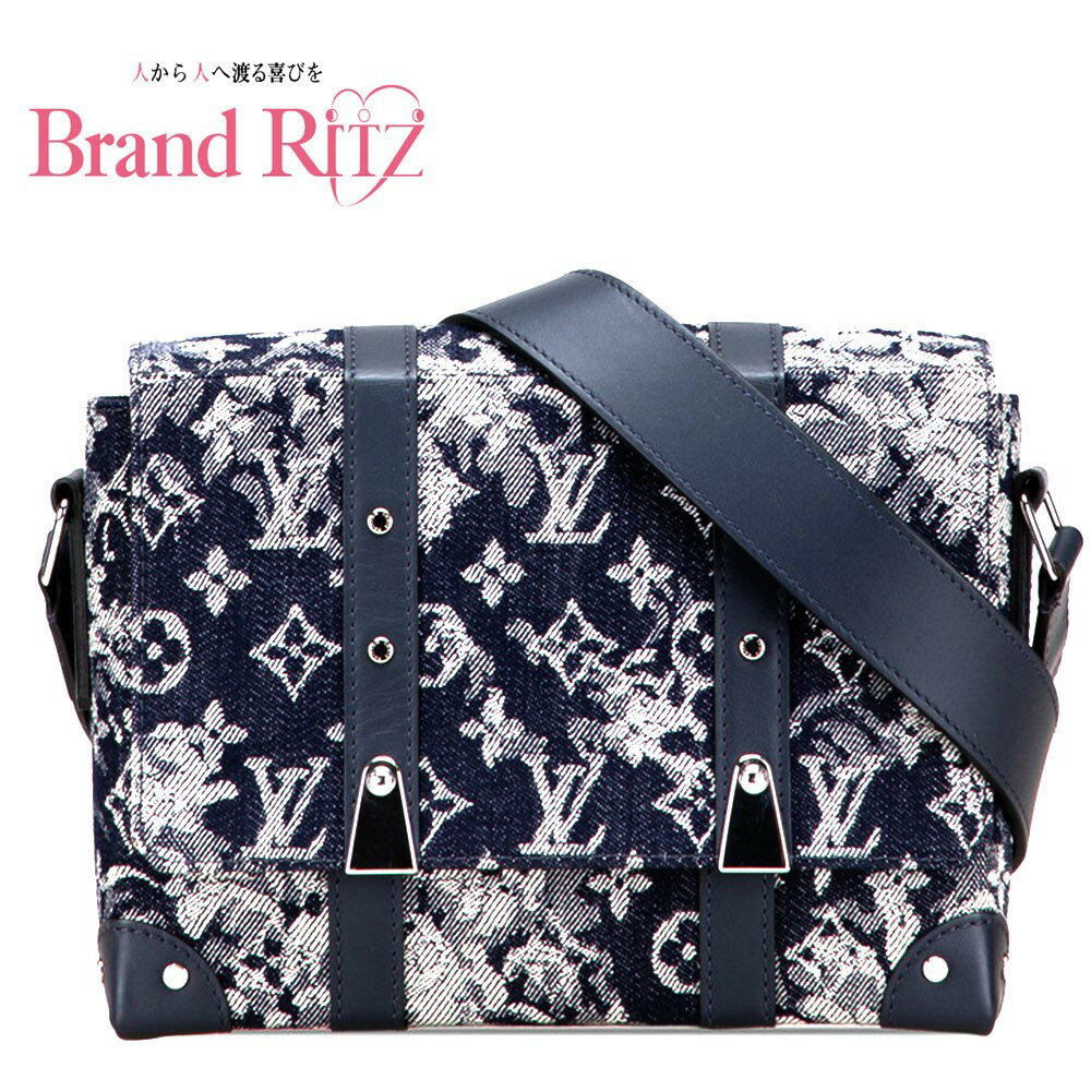 【絶対お得!!クーポンあり&10%OFF】中古 ルイ ヴィトン モノグラム タペストリー トランク メッセンジャーPM メッセンジャーバッグ M57282 Aランク ネイビー デニム レザー レディース LOUIS VUITTON あす楽【送料無料】【名谷店】
