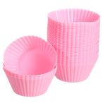 uxcell 42個入りのシリコンカップケーキ型 ノンスティックマフィンライナー 卵料理 マフィンの焼き上げ ケーキ作りに最適(ピンク)