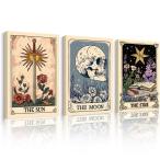 【並行輸入品】タロットカード ウォールアート 太陽 月 キャンバス 壁の装飾 神秘的な占星術 ウォールアート ボーホー 天体 プリント 星 頭蓋骨 ポ