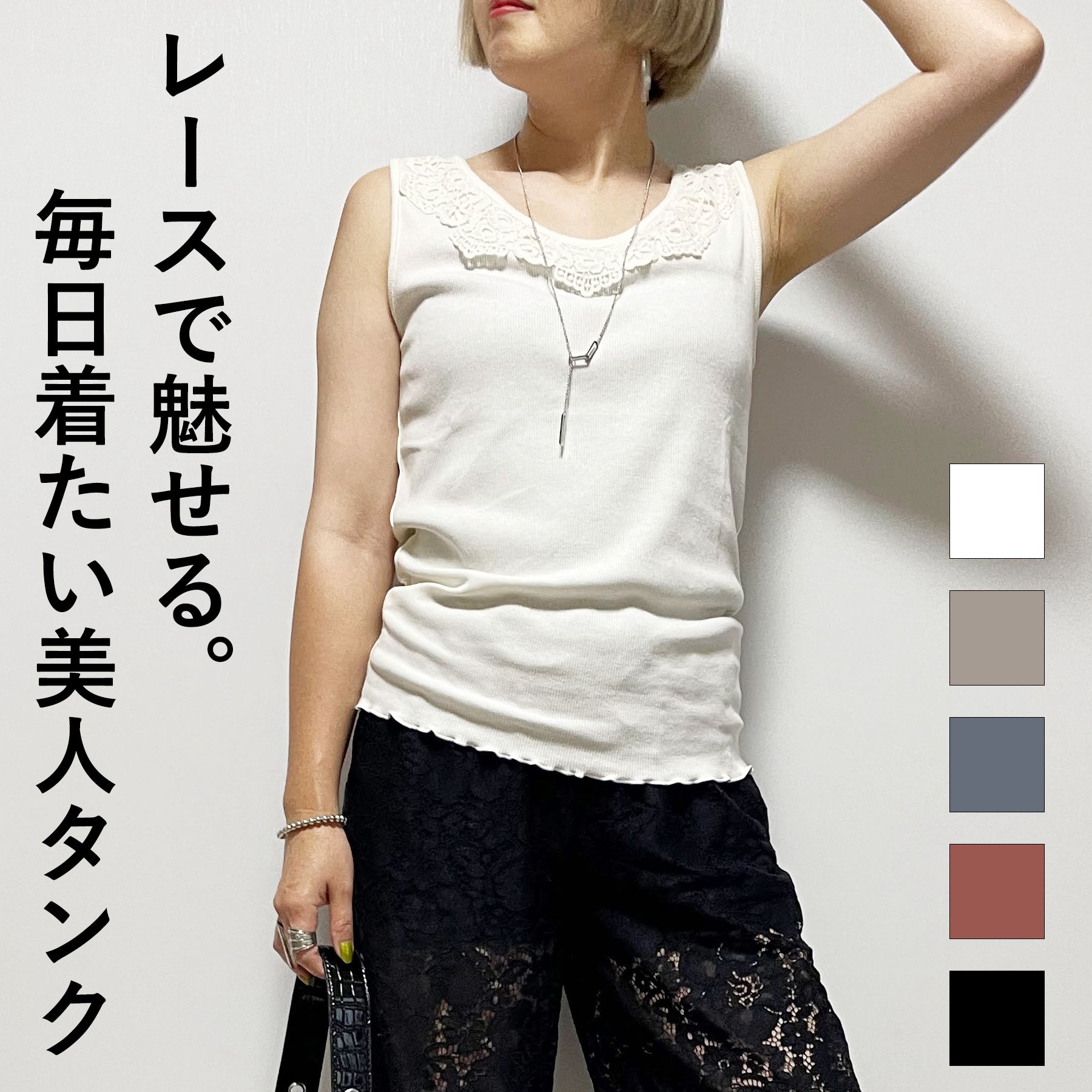 \SALE36%OFF/タンクトップ レディース 春 夏 レース フロント リブ 大人 20代 30代 40代 50代