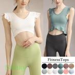 ヨガウェア ホットヨガ ブラ スポーツブラ タンク 長め 無地 Vネック ス フレンチスリーブ フリル おしゃれ かわいい フィットネス
