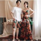 水着 ペアルック カップル レディース 体型カバー ペア 花柄 パッド付き ドレス ショートパンツ 日焼け対策 防晒 メンズ サーフパンツ タンクトップ セパレート