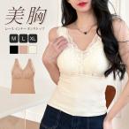 タンクトップ ノースリーブ レースブラトップ パッド付きトップス レディース