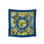 HERMES◆カレ90/タンザニア/スカーフ/シルク/BLU/アニマル/レディース