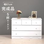 (タイムセール中) タンス 幅87cm奥行35cm高さ55cm 3段5杯ロータイプ 桐製 ホワイト 白 完成品 チェスト