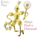 【ポイント10倍】ラペルピン ピンズ ピエロ タンバリン あこや本真珠 5mm ダイヤモンド k18 18k 18金 イエローゴールド 男女兼用 ユニセックス おすすめ カジュアル トレンド プレゼント ギフト ジュエリー ハロウィン