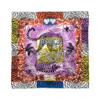 エルメス シルクスカーフ カレ70 ジャングル ラブ オ タンポン H983946S 01 ルージュ シクラメン マルチカラー ホワイト JUNGLE LOVE AU TAMPON HERMES