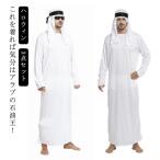 ハロウィンアラブ衣装 3点セット 仮装 長袖 男性 メンズ サウジアラビア 石油王 富豪 民族衣装 フリーサイズ ホワイト エスニック衣料