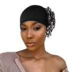 【並行輸入品】レディース ターバンとヘッドラップ スカルキャップ アフリカンターバン フラワーノット 結ばれたボンネット ビーニーキャップ レデ