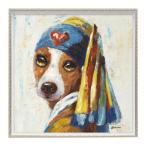 アートパネル オイルペイントアート 『青いターバンの犬』 63×63cm ( 絵画 絵 アート インテリア 額 額入り 壁掛け 油絵 おしゃれ 犬 )