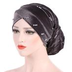 【並行輸入品】KODENG ニューイスラム教徒パールビーズ レディース ターバンヘッドスカーフ ラップ ベルベット ストレッチ バギーハット 抜