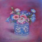 花 絵画 トルコ桔梗 パステル画 石井清 額付き