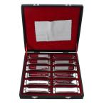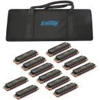 ハーモニカ 12セットブルースハープ 10ホール20トーン 真鍮カバー キャンバスケース 清潔布 初心者 専門家 練習用 ダイアトニックハーモニカ T008K-Bk-12