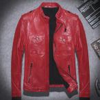 春秋定番/高級本革ジャケット★本革 100%羊革 レザージャケット 赤 男性用 紳士用 防風 防寒 革ジャン