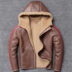 毛皮一体 男性 B3 空軍ジャケット フード付き 大きな毛皮の襟 革ジャケット オリジナル 生態学的な羊の毛 メンズファッション