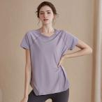 在庫一掃 ヨガウェア ヨガ トップス ロング丈 オーバーサイズ 半袖 着丈長め 丈長 吸収速乾 通気性 快適 スリット 透け感 2WAY レディース おしゃれ かわいい