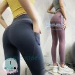 ヨガウェア レディース スポーツウェア レギンス スパッツ タイツ タイト ストレッチ ポケット フィット 脚長 スリム パープル