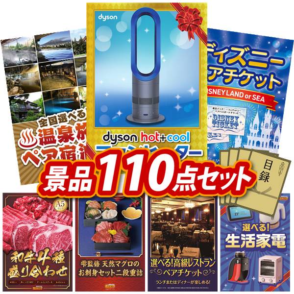 景品 110点セット 特大パネル 豪華目録 ビンゴ 結婚式 披露宴 二次会 忘年会 新年会 ゴルフコンペ 景品セット 【Dyson Hot + Cool ファンヒーター、選べる!全国温泉旅行ペア宿泊券】 送料無料 特大パネル 豪華目録付き