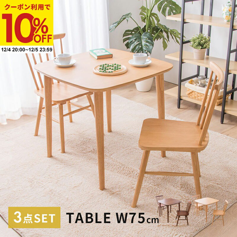【枚数限定!50%OFFクーポン配布中】 ダイニングテーブル 2人 2人用 3点セット 75cm幅 ダイニングテーブルセット 木製 ダイニングセット 北欧 ミッドセンチュリー おしゃれ 2人掛け 食卓テーブル ダイニング 食卓 ウッドダイニング