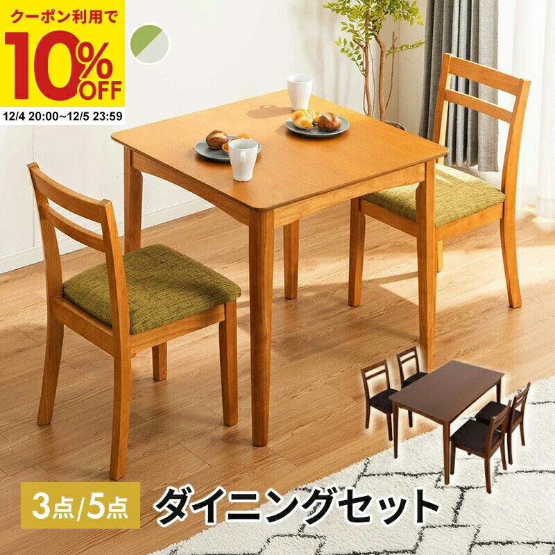 【1名限定50%OFFクーポン★12/4 20:00〜】 ダイニングテーブル 3点セット 5点セット 幅75 幅120 ダイニングチェア ダイニングセット 木製 ナチュラルxグリーン ダークブラウンxブラウン ホワイトxグリーン ダイニングテーブル 送料無料