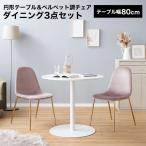 ダイニングセット 3点 3点セット 丸テーブル ホワイト 白 円形 ラウンド テーブル 80cm ベルベット調 チェア ダイニングチェア リビング 食卓
