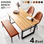 \全商品に使える12%offクーポン!!/ ダイニングテーブルセット 4人掛け ベンチ ダイニングセット 4点セット 2人掛け 120cm 食卓セット チェア2脚 長椅子 ダイニングテーブル 幅120 おしゃれ モダン ヴィンテージ風 アイアン PVC 合成皮革 布 椅子セット