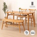 【11/30まで特別価格!】 ダイニングセット 4点 4人掛け 3人掛け テーブル チェア ベンチ 背もたれ無し 棚 木製 ノルン ISSEIKI 【11/28-30 ポイント10%UP!!】