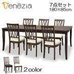 ダイニングテーブルセット ダイニングセット 7点セット 180cm × 85cm アーム無チェア × 4脚 アーム付チェア × 2脚 ホワイト ブラック ベネチア