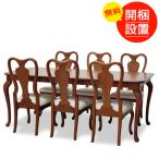 【ポイント20倍】ダイニングセット 7点セット(テーブル幅150+チェア肘なし×6)【francesca】ブラウン アンティーク調クラシック家具シリーズ【francesca】フランチェスカ:ダイニング【代引不可】