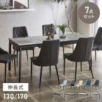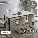 セラミック 伸縮 ダイニングセット 6人掛け 7点セット ダイニングテーブルセット 伸長式 幅130~幅170 合皮 デザインチェア 鏡面 ダイニングチェア 代引不可