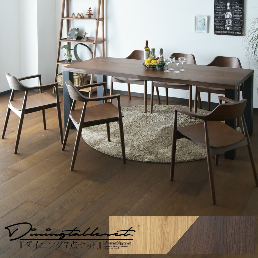 【送料無料】 ダイニングテーブルセット 6人掛け ウォールナット アッシュ 無垢材 突板 7点セット 北欧 ダイニングセット 6人 無垢 ウォルナット 木製 ナチュラル モダン おしゃれ 高級 190 ブラウン 肘付き
