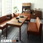 (タイムセール中) ダイニングテーブルセット 8人用 おしゃれ 5点セット(テーブル120-180+2P×2脚+左アームソファ+ベンチ) 大型L字ソファ