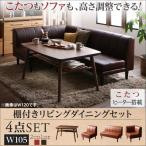 (タイムセール中) ダイニングテーブルセット 4人掛け ロータイプ 4人用 110cm×70cm ダイニングソファ