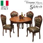 ダイニングテーブルセット ヴェローナ クラシック ダイニング 5点セット (テーブル幅110cm+革張りチェア4脚) 42200135
