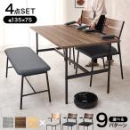 (タイムセール中) ダイニングテーブルセット 4人掛け 肘付きチェア2脚・ベンチ 4人用 幅135×75cm コンクリート調 木目