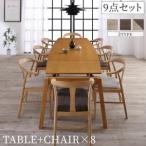 (タイムセール中) 食卓テーブルセット 8人用 おしゃれ 9点セット(テーブル140-240+チェア8脚) スライド伸縮 天然木オーク材
