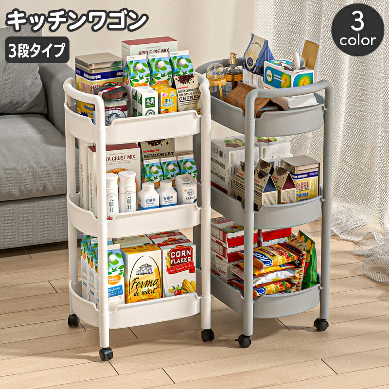 送料無料 キッチンワゴン キッチンラック 収納ラック キャスター付き 可動式 フック付き 3段 リビング ダイニング 台所 洗面所 キッチン整理用品 棚 シンプル 便利 すっきり