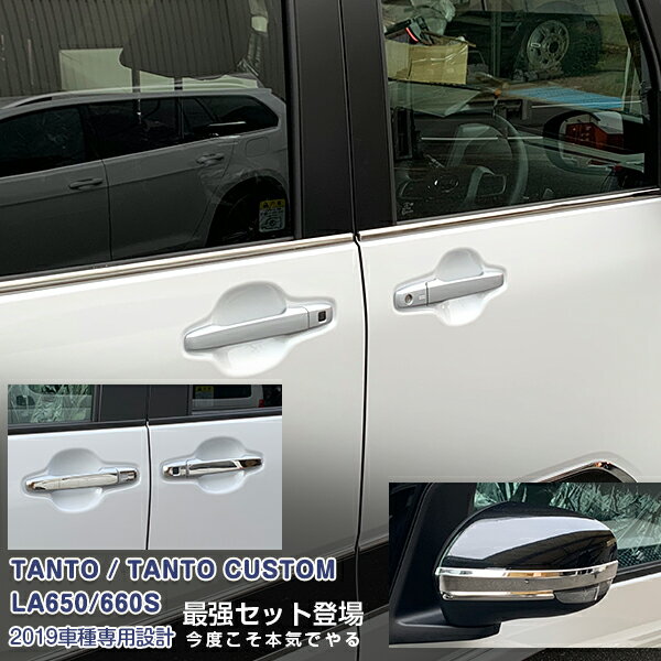 セット割 タント カスタム LA650/660S 2019年 ドアハンドルカバー & ミラーガーニッシュ & ドアトリム ステンレス製 鏡面 カスタム パーツ 4744