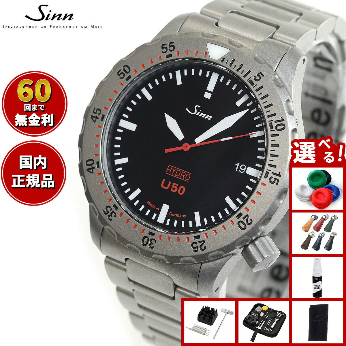 【選べるノベルティー付き】【60回分割手数料無料!】Sinn ジン U50.HYDRO 腕時計 メンズ Diving Watches ダイバーズウォッチ ステンレスバンド ドイツ製