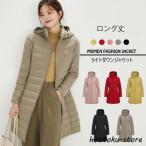 ロング丈フード付きライトダウン レディース ロング丈 ダウン 軽量 90%ダウン ライトアウター 防寒