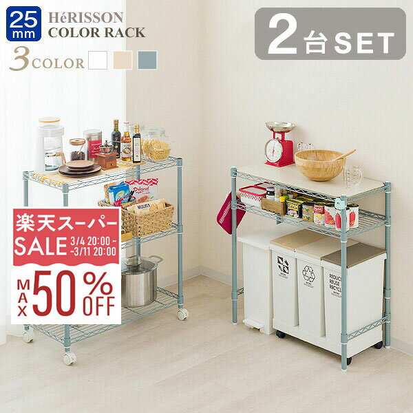 【10%OFF★3/11 1:59まで】ゴミ箱ラック&収納ラック【簡単ラック分割2台セット】ルミナス ラテ おしゃれ 北欧 白 幅80 ホワイト ベージュ グレー ゴミ箱 上 収納 ラック キッチンカウンター レンジボード 作業台 キッチンラック 頑丈 キャスター付き 炊飯器 電子レンジ