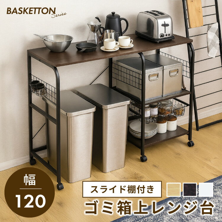 【15日★120枚★全品5%OFFクーポン 】 キッチンカウンター ゴミ箱収納 レンジラック ダストボックス キャスター付き 幅120 ゴミ箱上ラック ゴミ箱ラック レンジ台 キッチンラック キッチン収納 おしゃれ シンプル スリム 一人暮らし 収納棚