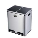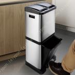 ゴミ箱 2分別 2x30L ダストボックス ペダル式 蓋付き ポリ袋おまけ インナーバケット二つ ステンレス 密閉 音無し
