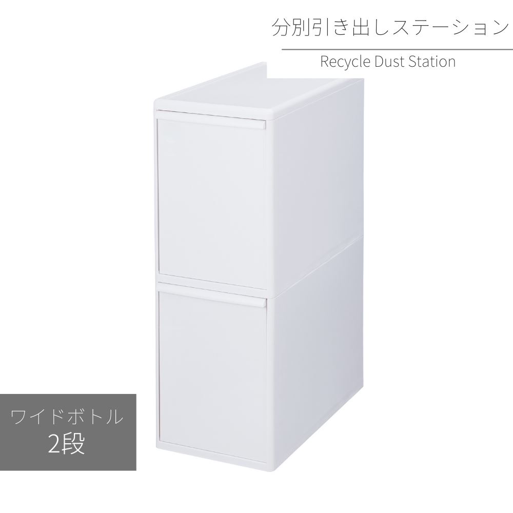 分別引出しステーション ワイドボトル 2段 | フタ付きゴミ箱 引き出し 幅25.5cm 50リットル 大容量 分別 隙間 分別ステッカー おしゃれ かわいい キッチン リビング ダストボックス 資源ごみ リサイクル シンプル ストッパー 袋が見えない ライクイット