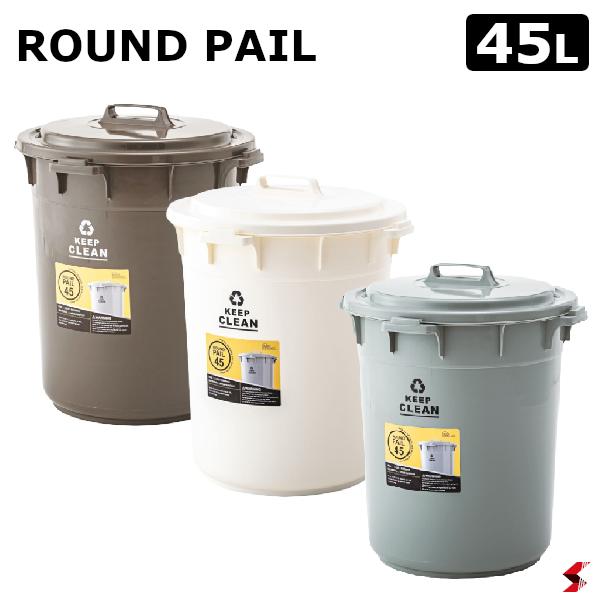 【日本製】ゴミ箱 ラウンドペール45L LFS-765 3色対応 蓋付き スリム キッチン リビング 上開き 密閉 筒型 丸型 ダストボックス 分別 くずかご ごみばこ プラスチック製 屋内 屋外 大型 生ごみ ロック付き