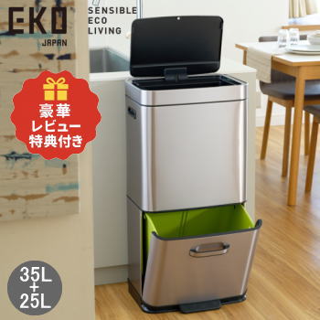 【レビュー記入で高級ビアカッププレゼント】EKO ゴミ箱 ダストボックス センサー&ステップ式 ごみ箱 分別 上下2段式 大容量 フタ付き 角型 電池駆動 電池式 ステンレス製 ヒマラヤ 35L+25L EK9339X-GMT