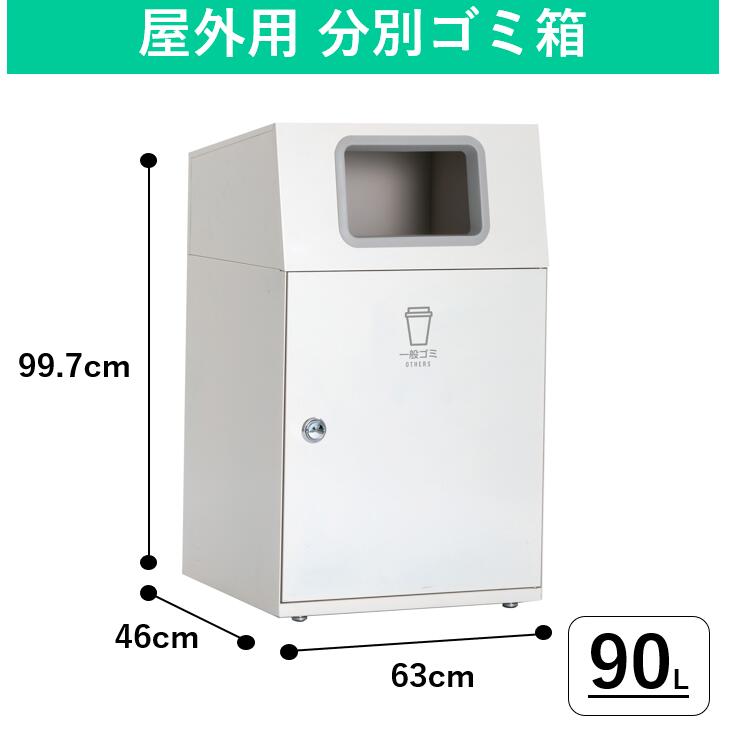 【業務用90L】中容器付き屋外用ゴミ箱|おしゃれで大容量なダストボックス 大型 屑入 くず入れ 外用 公園 公共施設 白 オフホワイト 分別用 業務用ゴミ箱 屋外 室外 施設用 角型