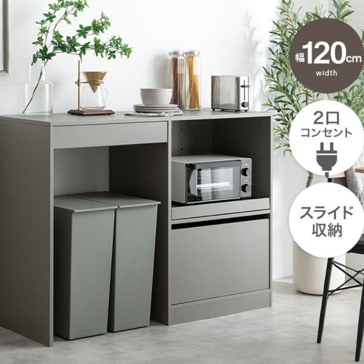 【10%OFF対象】ごみ箱上レンジラック ゴミ箱上レンジラック 幅120cm ゴミ収納スペース 2口コンセント コンセント付き 引き出し収納 引き出し付き プッシュオープン キッチン キッチン収納 レンジ スッキリ収納率 シンプル・モダン