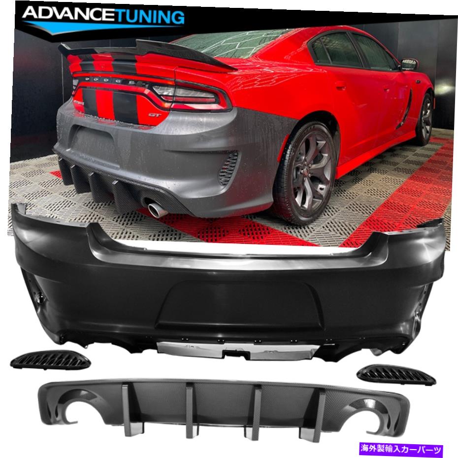 海外製 エアロパーツ フィット15-22ダッジ充電器リアバンパー変換w/カーボンプリントリアディフューザーpp Fits 15-22 Dodge Charger Rear Bumper Conversion w/ Carbon Print Rear Diffuser PP